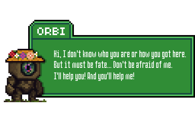 Meet Orbi. A lone stone golem who woke up when a single sprout broke through the ruined soil. Some say he hears the land itself. A quiet guardian of renewal.